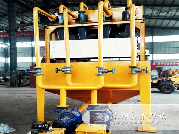巨鑫機(jī)械細(xì)沙回收機(jī)整套設(shè)備主要由由電機(jī)、(真空高壓泵)渣漿泵旋流器、脫水篩、清洗槽、返料箱等組成。工作時(shí)專(zhuān)用離心渣泵將清洗槽內(nèi)的砂水混合物輸送至旋流器,離心分級(jí)濃縮的細(xì)砂經(jīng)沉砂嘴提供給振動(dòng)脫水篩,經(jīng)振動(dòng)篩脫水后,細(xì)砂與水有效分離,少量細(xì)砂,泥等經(jīng) 返料箱再回到清洗槽,于旋流器回流的混合液產(chǎn)生混合,再次被送至旋流器分離。當(dāng)清洗槽液面過(guò)高時(shí),經(jīng)出水口排出??赏ㄟ^(guò)改變離心泵轉(zhuǎn)速、改變砂漿濃度,調(diào) 節(jié)溢流水量,更換出砂嘴來(lái)實(shí)現(xiàn)細(xì)度模數(shù)調(diào)整,從而完成清洗、脫水和分級(jí)三種功能。