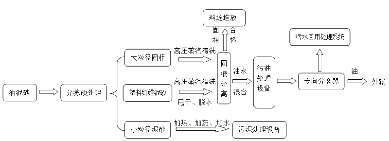 1.油泥分離主要采用物理化學相結合的處理方法,處理后的泥沙含油低,這種泥沙可以反耕使用,洗后的廢水可以循環(huán)利用。