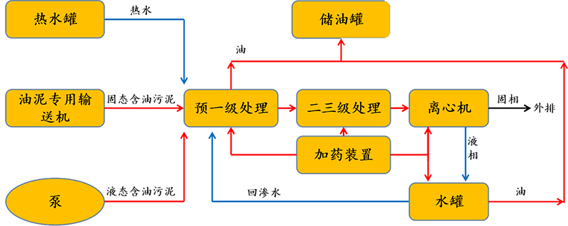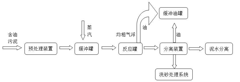 離心分離法是在離心力的作用下,利用密度差實現兩種或多種物流分離的一種物理方法。該法能回收部分原油,可產生一定的效益,抵扣運行成本。污油泥的分離處理過程通常包括固液分離、油水分離、油回收和廢渣利用等。為了獲得理想的分離效果,分離過程通常采取物理化學相結合的模式。分離后水中含油量達到200PPm以下,即可注入裝置前端的加熱設備中循環(huán)使用。